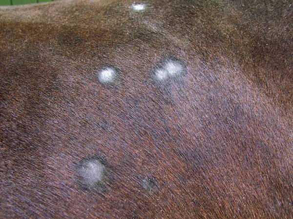 Je kunt het herkennen door de bultjes, die later ronde, kale, schilferige plekjes op de huid worden.